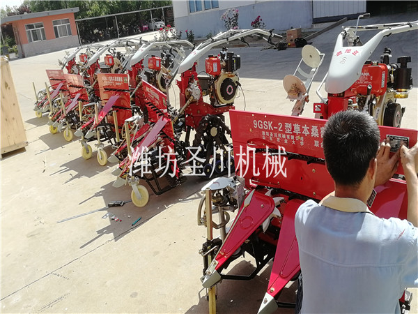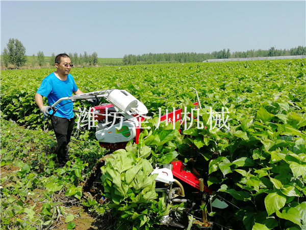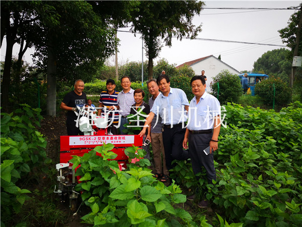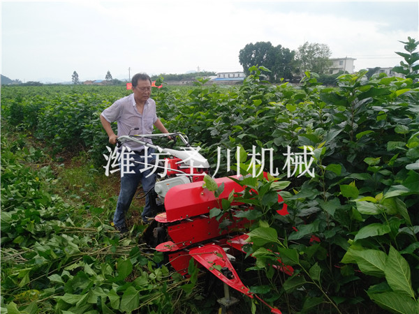該產(chǎn)品由山東農(nóng)業(yè)大學(xué)和濰坊圣川機(jī)械有限公司在原有稻麥割捆機(jī)的基礎(chǔ)上開(kāi)發(fā)的專門(mén)應(yīng)用于草本桑收獲的機(jī)械(擁有多項(xiàng)發(fā)明設(shè)計(jì)專利,仿冒必究)。草本桑是指草本化栽培、無(wú)干、一年可收割多次的桑樹(shù)。本系列草本桑收割機(jī)是一種手扶式草本桑收割機(jī)械,是目前國(guó)內(nèi)唯一的一款專門(mén)開(kāi)發(fā)用來(lái)收割草本桑的機(jī)械。具有機(jī)體積小、重量輕,機(jī)動(dòng)性能靈活、操作簡(jiǎn)單省力、割茬高度可調(diào)、履帶內(nèi)距可調(diào)等優(yōu)點(diǎn),該機(jī)可廣泛用于平原、丘陵、坡地、窄小地塊作等不同地形桑園內(nèi)草本桑的一年多次收割,收割后的草本桑既可用于養(yǎng)蠶,也可粉碎后用于畜禽飼料。